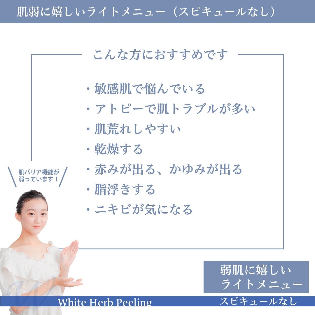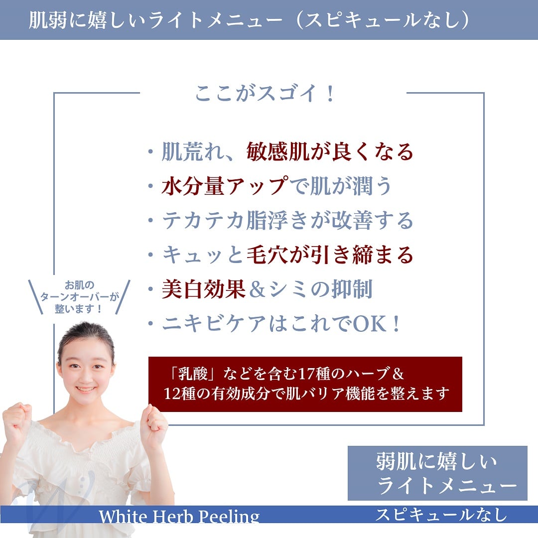 おすすめメニュー:【弱肌向け】【スピキュールなし】ホワイトハーブピーリング ライト